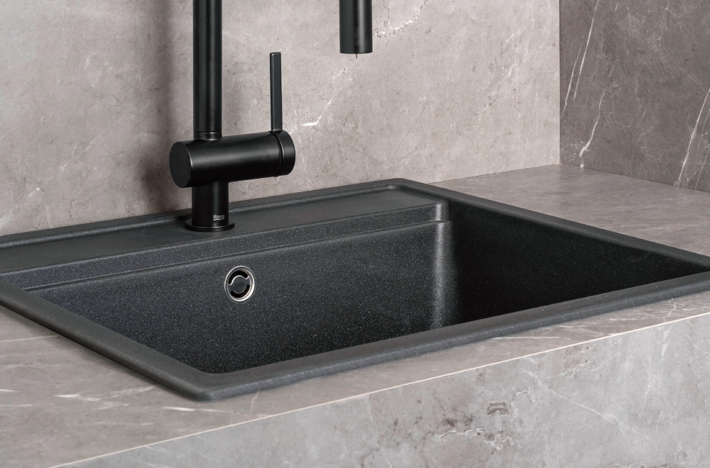 Fregaderos roca en cuarzo, gres o acero inoxidable que te permitirán experimentar con distintas configuraciones y acabados.